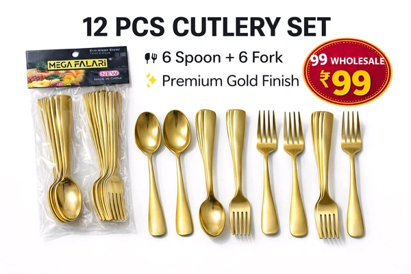 Upgrade your tableware game with this versatile set that combines beauty and functionality. Whether you're a homemaker, a restaurateur, or someone seeking a reliable wholesale item, the Mega Falari 12 PCS Gold Cutlery Set is your ultimate choice.