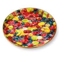Elevate Your Serving Style with the Printed Round Plastic Serving Tray with Golden Rim